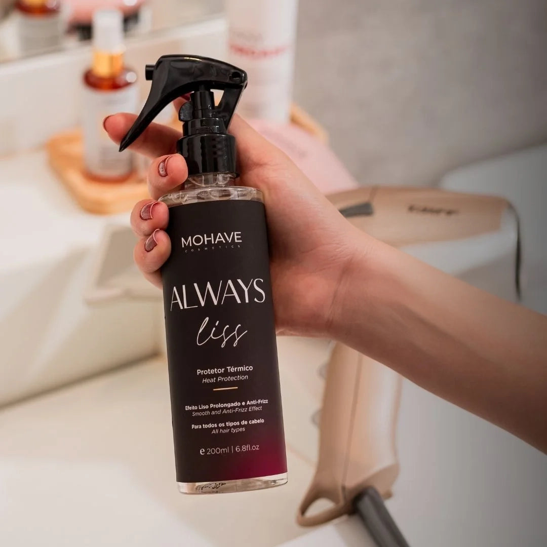 O Always Liss da Mohave tem efeito liso prolongado, controla o frizz desde a primeira aplicação e deixa os fios com um perfume marcante. Um verdadeiro aliado na rotina de quem quer praticidade, proteção térmica e resultado de salão todos os dias.